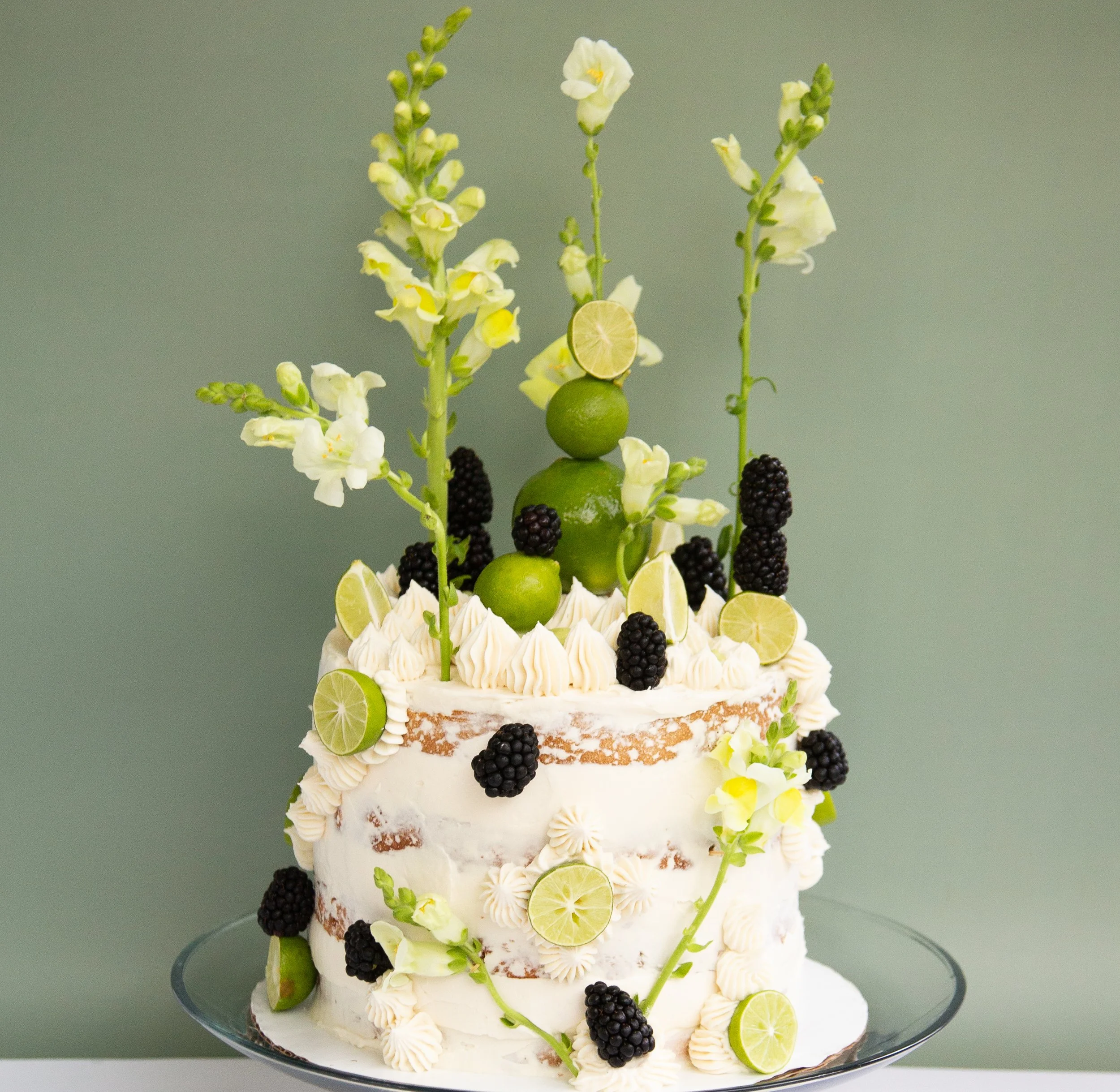 Coconut Lime Blackberry Cake + Key Lime Coconut Curd + Lime Vanilla Meringue Buttercream